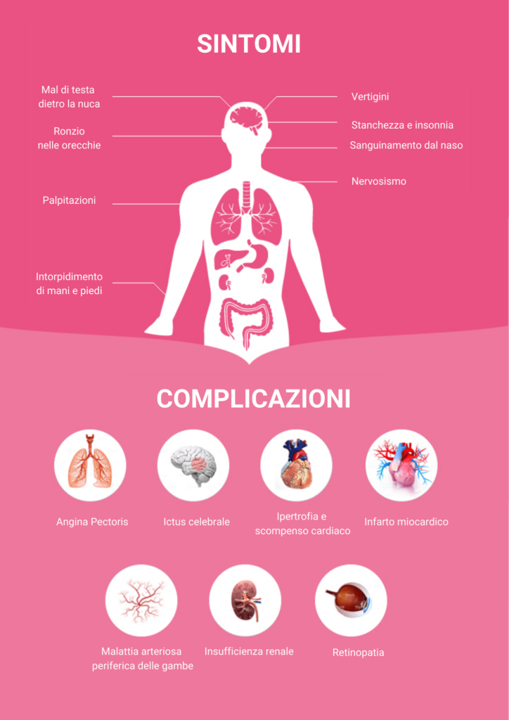 L’ipertensione aumenta il rischio di insufficienza cardiaca, infarto miocardico, arteriopatia obliterante degli arti inferiori (restringimento delle arterie delle gambe) e insufficienza renale.