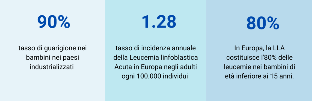 Come tutti i tumori, la leucemia linfoblastica acuta (LLA) è una malattia caratterizzata dal malfunzionamento di alcune cellule che si moltiplicano in modo incontrollato, prima localmente e poi nei tessuti attigui. E’ una malattia rara, colpisce maggiormente i bambini rispetto agli adulti e gli uomini più frequentemente delle donne.1